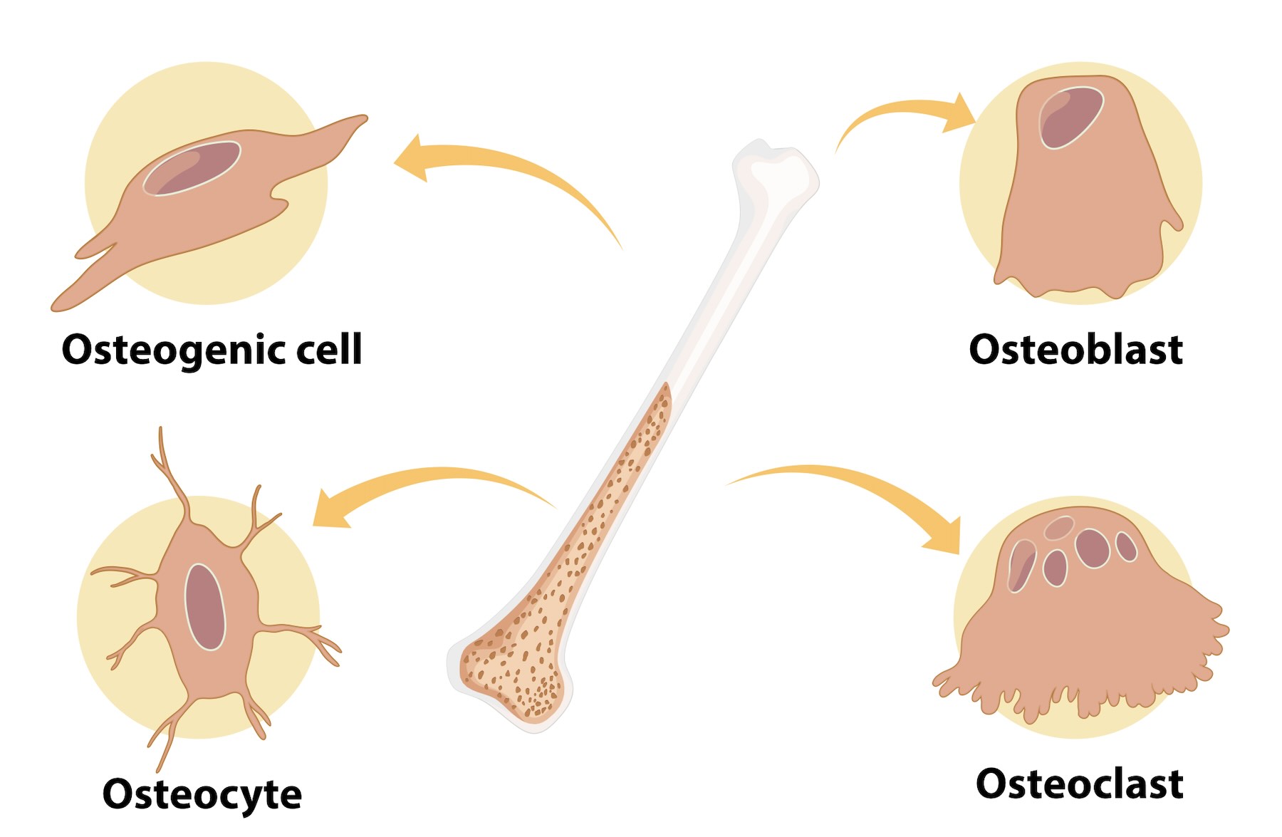 In de botten vindt een continu proces plaats van aanmaak en afbraak van botweefsel. Gespecialiseerde bindweefselcellen zorgen voor de afbraak van botweefsel (osteoclasten), dat vervangen wordt door nieuw botweefsel dankzij de botvormende bindweefselcellen (osteoblasten). Na verloop van tijd, als de osteoblasten zijn uitgewerkt, veranderen deze in osteocyten. Osteocyten vormen in feite uitgehard botweefsel. De belangrijkste mineralen in de botmatrix zijn calcium en fosfaat. Het belangrijkste eiwit is collageen. Collageen draagt bij aan de buigzaamheid van de botten, terwijl de mineralen juist zorgen voor de hardheid en stevigheid.