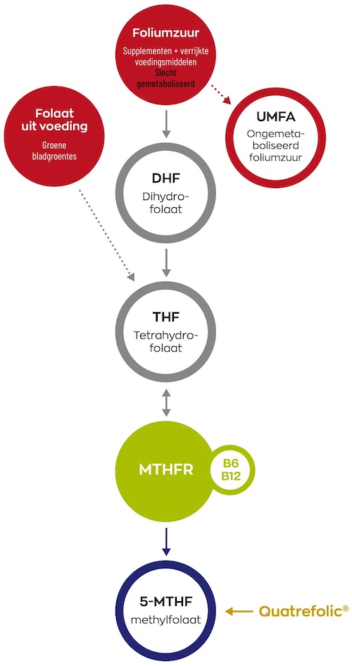 Vitamine B12 en folaat moeten normaal eerst worden omgezet voordat het lichaam ze kan gebruiken. Deze omzetting verloopt niet bij iedereen even efficiënt. Daarom bevat de formule actieve vormen van folaat als 5-MTHF en vitamine B12 als adenosylcobalamine en methylcobalamine, zodat directe benutting mogelijk is.