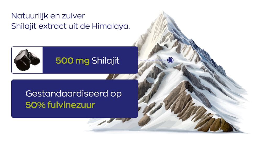 Dit product bevat gepatenteerd PrimaVie®, een gezuiverd Shilajit-extract. Tijdens het proces blijven natuurlijke componenten zoals humusstoffen en spoorelementen behouden.